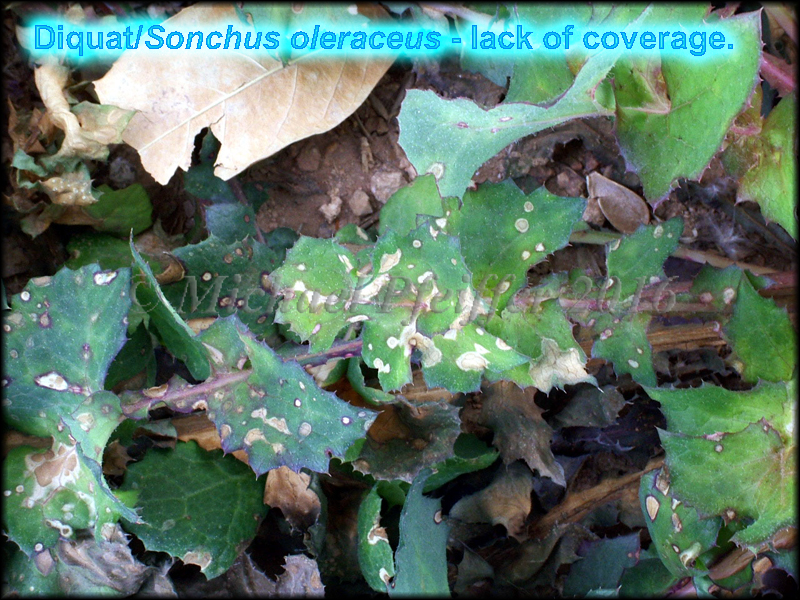 | On plants affected by these herbicides symptoms include a water soaked appearance to foliage (+/- wilting) followed by dessication (browning) of tissue. Light is needed for activity and symptoms develop quickly on bright, warm days. With both groups of herbicides, best post-emergence control is achieved when applied to small weeds. |