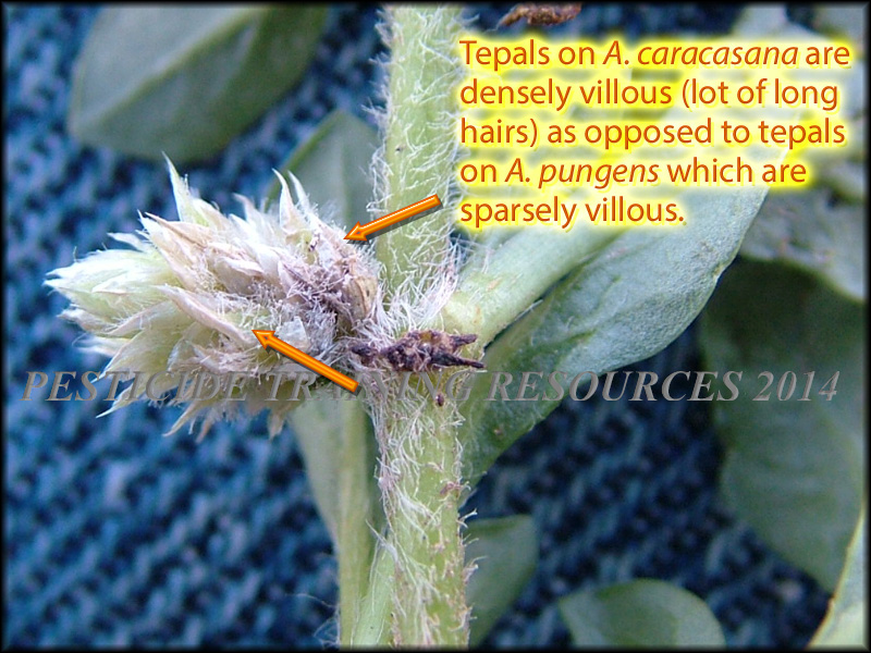 The name Alternanthera pungens Kunth, Khakiweed, has been misapplied to this weed in Arizona. See A. pungens for comparison. |